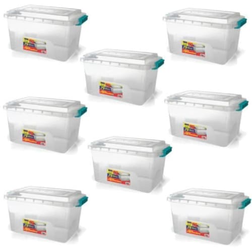 Kit 8 Caixas Organizadoras Transparente Tampa e Travas 19 L 2173 Ercaplast Caixa Organizadora Alta 19 Litros com Travas