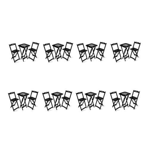 Kit 8 Conjuntos De Mesa Bistrô Dobrável Jack Daniel S Com 2 Banquetas De Madeira Preta O Conjunto Jack Daniel?s é ideal para bares, restaurantes, estabelecimentos, áreas de lazer e também para sua casa. Em madeira maciça, tornando-os resistentes e duráveis. Seu design permite que esse conjunto seja encaixado em qualquer ambiente, trazendo um toque a mais para seu estabelecimento. Além de sua durabilidade, o que lhe trará conforto para servir seus clientes. Por ser dobrável torna-se mais fácil guardar, manusear e limpar o produto.