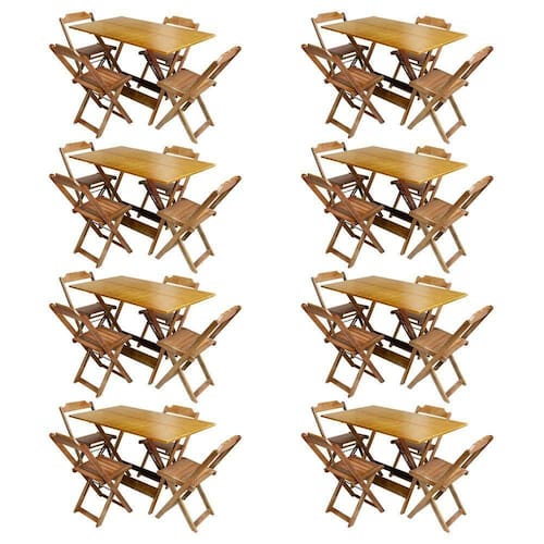 Kit 8 Conjuntos De Mesa Com 4 Cadeiras De Madeira Dobravel 120X70 Mel - Amarelo