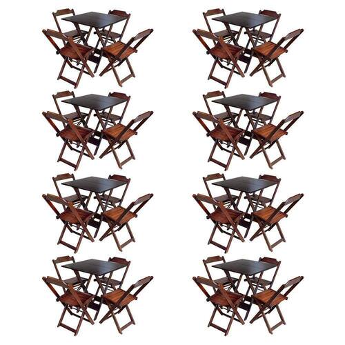 Kit 8 Conjuntos De Mesa Com 4 Cadeiras De Madeira Dobravel 70x70 Imbuia - Cor: Marrom