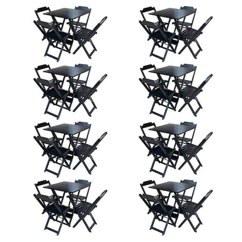 Kit 8 Conjuntos De Mesa Com 4 Cadeiras De Madeira Dobravel 70x70 Preto - Cor: Preto