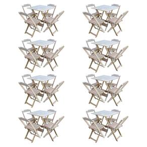 Kit 8 Conjuntos De Mesa Com 4 Cadeiras De Madeira Dobravel 70x70 Sem Pintura/crua - Cor: Marrom