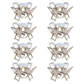 Kit 8 Conjuntos De Mesa Com 4 Cadeiras De Madeira Dobravel 70x70 Sem Pintura/crua - Cor: Marrom
