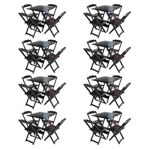 Kit 8 Conjuntos De Mesa Com 4 Cadeiras De Madeira Dobravel 70x70 Tabaco - Cor: Marrom