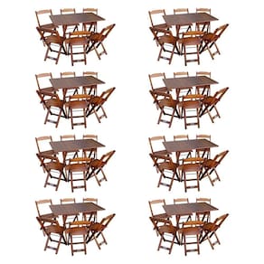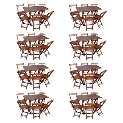 Kit 8 Conjuntos De Mesa Dobráveis De Madeira 70x110cm Com 6 Cadeiras Imbuia