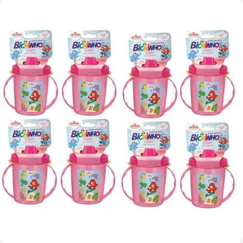Kit 8 Copo Infantil Com Alças/Bico 320ML 6 Meses Rosa Copo Infantil Com Alças E Bico 320ML Bichinhos 6 Meses Rosa