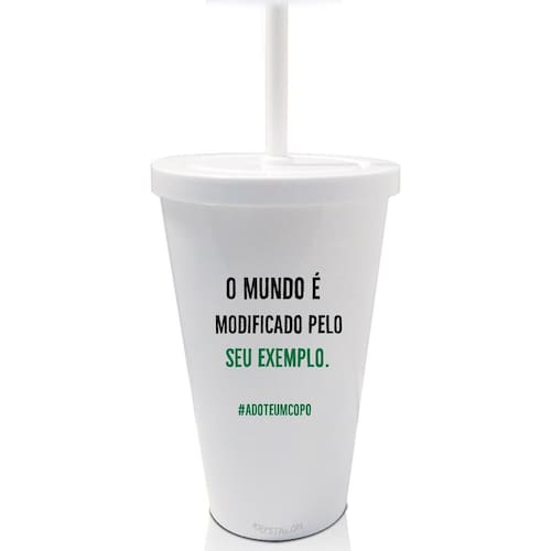 Kit eco com copos com tampa e canudo eco personalizados para ajudar o meio ambiente. Adote o seu copo e evite descartáveis. Juntos somos mais fortes. Confira as opções de copos, taças e canecas ecológicas personalizadas. Especificações: Material: Acrílico PS Altura: 14,5 cm Diâmetro: 9,5 cm Capacidade: 550 ml Cor: Branco Quantidade: 8 peças