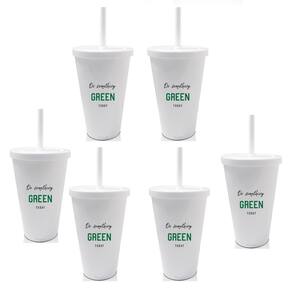 Kit eco com copos com tampa e canudo eco personalizados para ajudar o meio ambiente. Adote o seu copo e evite descartáveis. Juntos somos mais fortes. Confira as opções de copos, taças e canecas ecológicas personalizadas. Especificações: Material: Acrílico PS Altura: 14,5 cm Diâmetro: 9,5 cm Capacidade: 550 ml Cor: Branco Quantidade: 8 peças