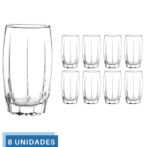 Conjunto Copos De Vidro Transparente Long Drink Amadeus 374ML 8 Unidades