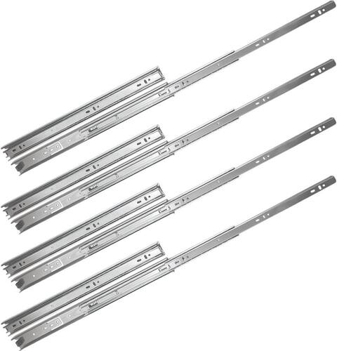 Kit com 8 Corrediças 4 pares Telescópica Trilho 400mm x 35mm 35Kg para Gaveta Rayco A Corrediça telescópica 40cm x 35mm da Rayco é indicada para gavetas de cozinhas, closets, quartos, banheiros, lavanderias, prateleiras retráteis/extensíveis, bases de teclado e mobiliário em geral. O par suporta até 35kg. - Marca: Rayco - Referência: R20533-4X - Acompanha 8 corrediças 4 Pares - Comprimento: 40cm 16 Polegadas - Largura: 35mm - Espessura: 12,1mm - Para uso geral e pesado - Possibilita a abertura total da gaveta com deslizamento suave, preciso e resistente - Corpo em aço galvanizado - Deslizamento através de de aço - Tipo: telescópica - O par suporta até 35kg - Peso: 515 gramas - : 90 dias
