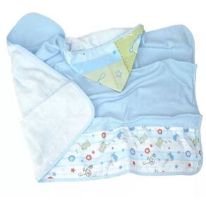 Este kit contém 8 Cueiro flanelado estampada 80x80cm com acabamento em crochê feito a maquina 2 Toalha de banho com capuz dupla face 70x90cm 5 Fraldinha de boca luxo estampada 33x33cm com acabamento em crochê feito a maquina Detalhe dos produtos: Tecido fraldas: macia dupla 100% algodão Tecido cueiros: flanela 100% algodão Tecido toalhas: 100% algodão com forro de fralda Marca: DUGU Cores: para menino Marca: Não Informado