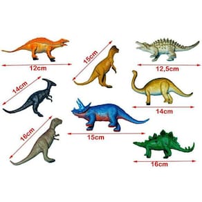 Cojunto de 8 dinossauros pré-históricos de borrachaMarca: ausiniPeso: 315gMedida aprox dos dinossauros : 16cm comp Medidas embalagem: 32cm x 20cm comp x larg Composição: borrachaCor: sortidasAtenção: não recomndado para menores de 3 anosCertificado pelo inmetro ocp 0098 nbr nm 005411/2018Homologação Inmetro: 00163/2018-BRINQ-7