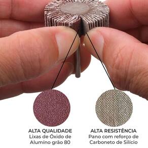 Kit com 8 Discos Flap de Lixa 32mm Roda em Lamelas Grão 80 Haste 3mm para Micro Retíficas Dremax DIFERENCIAIS - Fornece uma capacidade abrasiva rápida e constante até o desgaste completo da roda, mantendo sempre a flexibilidade, sem empastar e sem aquecer a peça trabalhada, evitando a sua deformação. - Indicada para lixamentos e acabamentos de superfícies planas, contornos e partes internas - Discos de lixa com lamelas também são para finalização depois do lixamento pesado, com a remoção de material já completa. - Indicado para materiais como madeira, plásticos, metais e emborrachados - Os discos de lixa em lamelas são excelentes para a remoção de acabamento e limpeza ligeira de material porque estes são mais indulgentes do que as cintas de lixa. Estes não penetram no material tão rapidamente - Estes também tendem a não aquecer tanto devido às lamelas - deste modo é menos provável que provoquem queimaduras no material. ESPECIFICAÇÕES - Marca: Dremax - Modelo: DF-80 - Kit especial com 8 unidades - Diâmetro externo: 31,5 mm - Largura: 10 mm - Gramatura: Grão 80 - Tipo de grão abrasivo: Óxido de alumínio - Diâmetro da haste: 3,2 mm 1/8mm - Indicado para todas as marcas de micro retíficas, como Dremel, Charbs, Einhell, Black+Decker, Dremax, Mondial, Vonder, Titanium, Western, Ingco, Gamma, Wesco, etc. - Peso bruto: 8 gramas - : 90 dias contra defeitos de fabricação VELOCIDADES INDICADAS: - Alumínio: 30.000 a 35.000 rpm - Latão: 30.000 a 35.000 rpm - Cobre: 30.000 a 35.000 rpm - Madeira dura: 30.000 rpm - Plástico: 10.000 rpm - Madeira macia: 35.000 rpm - Aço: 35.000 rpm Marca: Não Informado