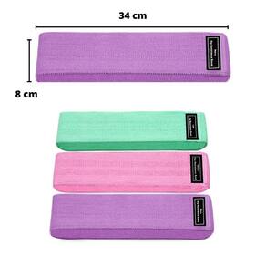 -3 Elásticos de cores: Verde, Rosa e Roxo.