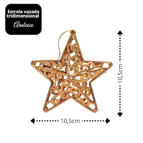 Adicione brilho e elegância à sua decoração de Natal com o Kit de Estrelas Vazadas Tridimensionais Arabesco em acabamento bronze metalizado. Com design sofisticado e acabamento brilhante, essas estrelas decorativas são perfeitas para árvores de Natal, guirlandas, arranjos ou composições em centros de mesa.
