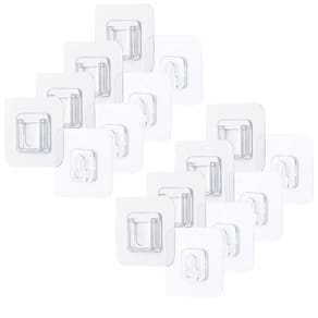 Kit 8 Ganchos Adesivo de Encaixe Transparente Multiuso Ganchos ideais para locais com superfície lisas como azulejos, pisos, madeiras envernizadas, vidro, inox e qualquer outra superfície apta a adesivação. O mais legal desse sistema de gancho é que a instalação é rápida, sem furos e sem sujeira, cole uma parte da superfície que deseja fixar e a outra no objeto que quer pendurar encaixe e pronto