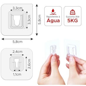- Kit com 8 pares - Suporta aproximadamente 5kg - Limpe bem as superfícies que deseja aplica superfícies lisas - Após aplicado aguarde aproximadamente 2 horas antes de colocar peso. - Resistente à água