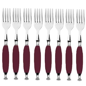 O conjunto de 8 garfos para sobremesa da Linha Country da Bugatti apresenta cabo em acrílico com efeito madrepérola suavemente arredondado e aro cônico em aço polido.