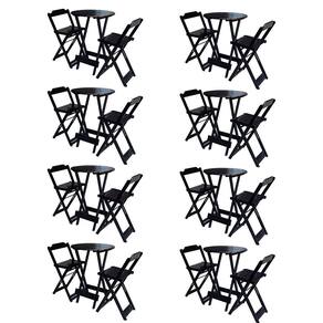 Kit 8 Jogos De Mesa Bistrô De Madeira Com 2 Cadeiras Dobravel Ideal Para Bar E Restaurante Preto é ideal para bares, restaurantes, estabelecimentos, áreas de lazer e tambem para sua casa. Feito em madeira maciça, tornando resistentes e duráveis. Seu design permite que seja encaixado em qualquer ambiente, trazendo um toque a mais para seu estabelecimento. Além de sua durabilidade, o que lhe trará conforto para servir seus clientes. Por ser dobrável torna-se mais fácil guardar, manusear e limpar o produto. Atenção: EVITE USAR PRODUTOS ABRASIVOS E QUíMICOS PARA LIMPEZA DO PRODUTO, aconselha-se o uso de pano umedecido para melhor conservação; mantenha o produto fora de chuva e sol constantes. OBS: MDF ULTRA MESA Cor: Preto Modelo: Bistrô Dobravel Dimensões: Altura 99cm | Largura 55cm | Profundidade 55cm CADEIRA Cor: Preto Modelo: Bistrô Dobravel Dimensões: Altura 100cm | Largura 38cm | Profundidade 37cm