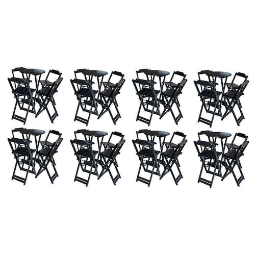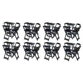 Kit 8 Jogos De Mesa Bistrô De Madeira Com 4 Cadeiras Dobravel Ideal Para Bar E Restaurante Preto - Cor: Preto