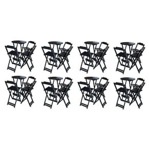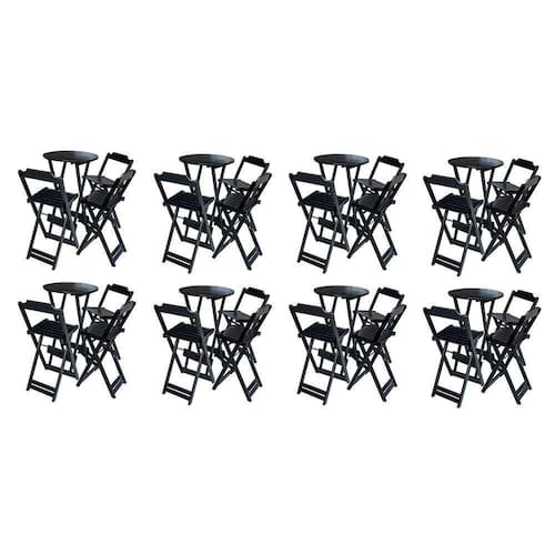 Kit 8 Jogos De Mesa Bistrô De Madeira Dobrável Com 3 Banquetas - Preto