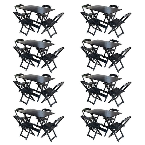 Kit 8 Jogos de Mesa com 4 Cadeiras de Madeira Dobravel 120x70 para Bar e Restaurante - Preto - Preto