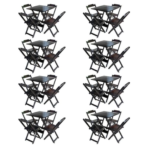 Kit 8 Jogos De Mesa Com 4 Cadeiras De Madeira Dobravel 60x60 Ideal Para Bar E Restaurante -tabaco - Cor: Marrom