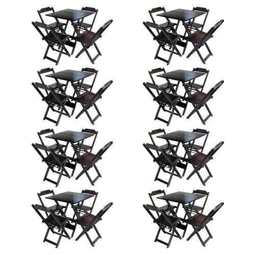Kit 8 Jogos De Mesa Com 4 Cadeiras De Madeira Dobravel 70x70 Ideal Para Bar E Restaurante - Tabaco - Cor: Marrom