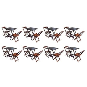 Kit 8 Jogos De Mesa Dobravel Com 2 Cadeiras De Madeira 70X70 - Imbuia - Marrom