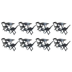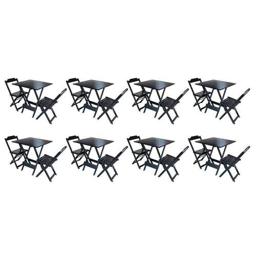 Kit 8 Jogos De Mesa Dobravel Com 2 Cadeiras De Madeira 70x70 - Preto - Cor: Preto