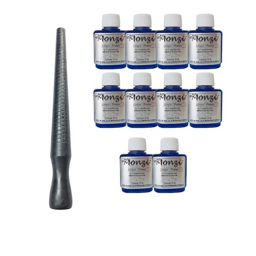 Kit 8 Limpa Pratas Monzi 35Ml + 1 Aneleira Medidor Anel Aliança Nº 1 Ao 33 Kit com 10 unidades limpa pratas azul + 1 aneleira medir dedo Descrição do produto: O limpa pratasmonzi é um produto específico para limpar prata 925 e fácil de usar.Já o limpa pratas monzi é um produto específico para limpar peças e acessórios em prata 925. Atenção para o modo de usar Modo de usar: - passe o limpa pratas monzi na prata 925 utilizando algodão. - enxágue em água corrente e enxugue bem com uma flanela mágica. Descarte o algodão. - para objetos maiores, utilize um recipiente de vidro ou plástico com imersão da peça por 10 segundos apenas. - lave bem o recipiente utilizado. - descarte o produto em água corrente. - não risca e nem desgasta a prataria. - limpa pratas monzi retira a oxidação e a gordura, deixando ainda, uma camada de proteção no objeto. Marca: Não Informado