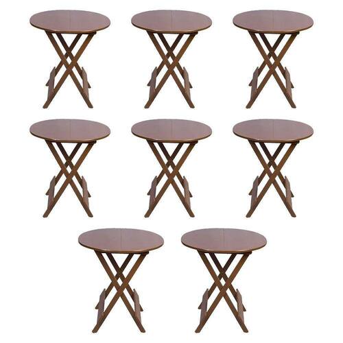 Kit 8 Mesas Redondas Dobráveis Em Madeira Maciça 70x70 Imbuia Ideal Para Bares E Restaurantes