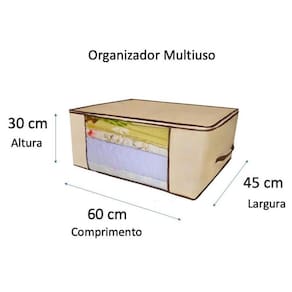 Modelo: Organizador Guarda Roupa Multiuso Material: TNT, Plástico no Visor e Zíper Duplo para fechar Visor: Parte frontal transparente Medida Comprimento x Largura x Altura : 60 x 45 x 30 cm Contém: Kit com 8 Organizadores.