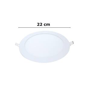 Informações técnicas: LED integrado Potência: 18W Temperatura: 3000K Emissão de luz amarela Diâmetro: 22 cm Forma: Redondo Lúmens: 1260 IRC: =70 Ângulo de abertura: 120 Material: Corpo em alumínio, difusor em vidro, corpo do driver em plástico Eficiência luminosa: 70lm/W Painel de embutir Vida útil: 25 mil horas L70 Pode ser ligado diretamente na rede elétrica em 127V ou 220V Espessura do forro deve ser pelo menos 1cm Não permite dimerização