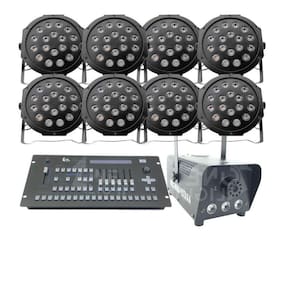 Kit 8 par led 18 leds + máquina de fumaça 600w + mesa pilot