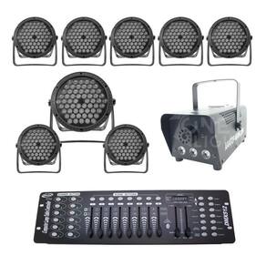Kit 8 par led slim rgb 3 em 1 full + máquina de fumaça 600w + mesa dmx 512