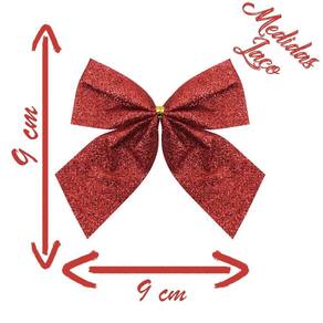 Kit 8 Peças Enfeite Árvore Natal Laço Lacinho Vermelho Glitter Brilhante 9cm