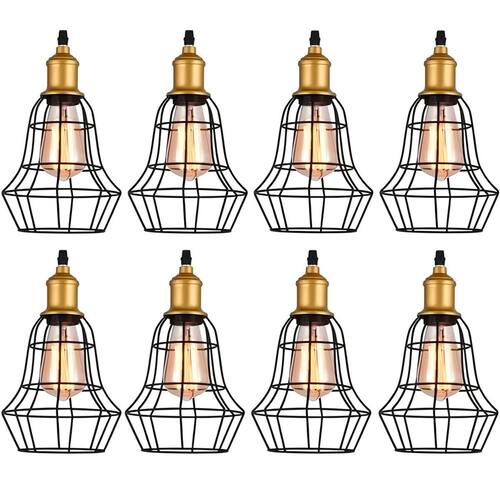 Kit 8 Pendente De Aço Taschibra 40w Vintage Lustre Preto 160 -