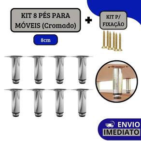 Kit 8 Pés Para Móveis Regulável Redondo Cromado 8cm