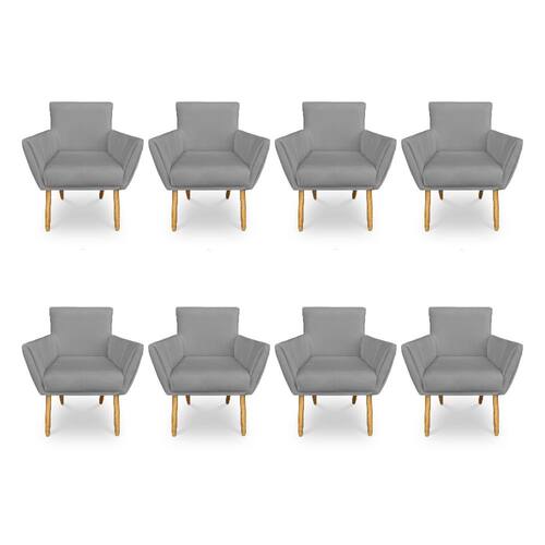 Kit 8 Poltronas Decorativa Leticia Suede Grafite Pés Palito Castanho - Pallazio