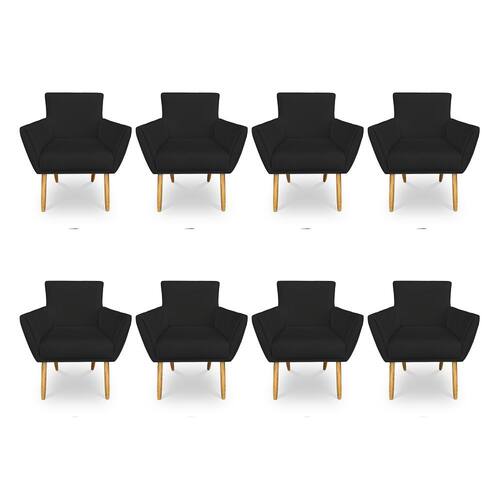 Kit 8 Poltronas Decorativa Leticia Suede Pés Palito Castanho - Pallazio - Preto