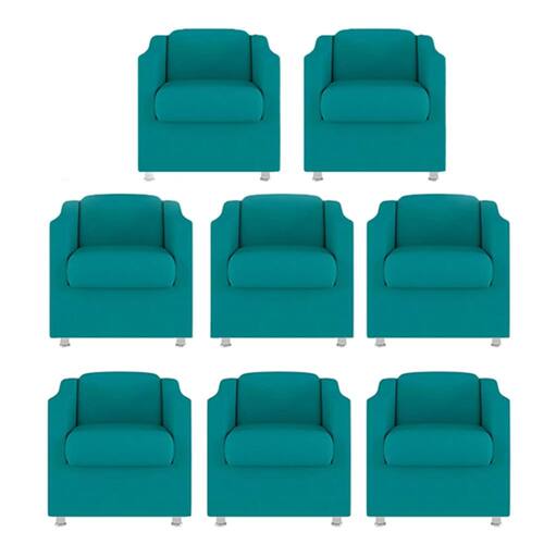 Kit 8 Poltronas Decorativa Reforçada Recepção Clinica Salão Suede - Azul
