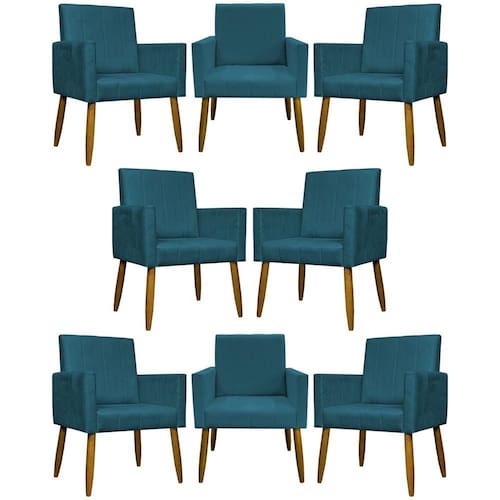 KIT 8 POLTRONAS MARI SUEDE CORES PÉ PALITO 30 CM CASTANHO
