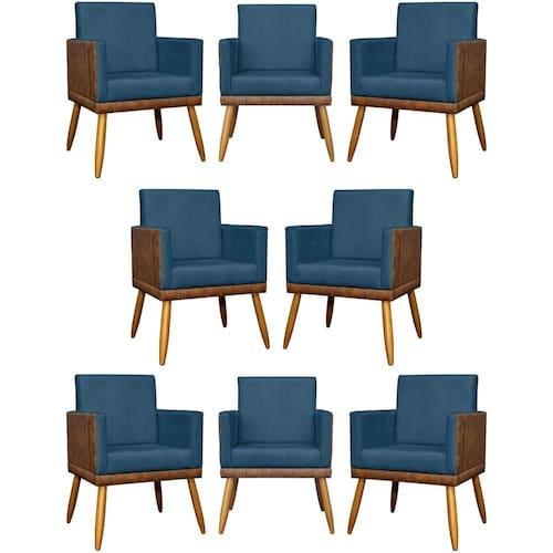 KIT 8 POLTRONAS LIS CORINO E SUEDE CORES PÉ PALITO 30 CM