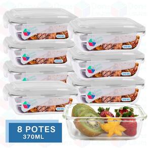 Pote de Vidro com Tampa Hermética Retangular - 370ml