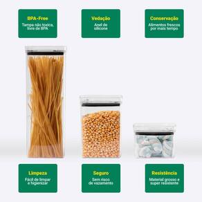 Ideal para armazenar Grãos, Cereais, Massas, Farinhas, Café em Grão, Chás, Ervas, Biscoitos, Snacks, Salgadinhos e muito mais, ele preserva o frescor dos alimentos por mais tempo. Sua tampa de plástico resistente com borda em silicone proporciona um fechamento hermético, a solução perfeita para manter seus alimentos frescos e protegidos por mais tempo. Com vedação hermética, impede a entrada de ar e umidade, preservando o sabor e a textura dos alimentos.