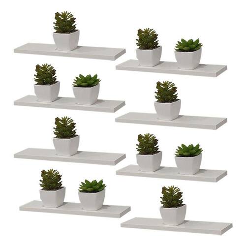 O Kit 8 Prateleira Branca MDF 40 x 15cm Suporte Invisível foi desenvolvido pensando em deixar o seu ambiente mais criativo e moderno de forma simples e prática. A prateleira é produzida em MDF 12mm na cor branco brilhante, seus suportes Invisíveis são ideais na organização de espaço, tornando a prateleira um produto versátil, que se adequa a todos os tipos de decorações. Exponha seus livros favoritos, enfeites, coleções ou porta-retratos e garantirá elogios ao seu ambiente! Suas medidas são: 40cm largura x 20cm profundidade x 1,2cm espessura Quantidade: este kit contém 8 prateleiras Cor: branco Acabamento: brilhante Tipo de suporte: embutir / invisível (acompanha 1 par de suportes para cada prateleira) Suporta aproximadamente 3kg quando instalada em parede de alvenaria. Para fácil limpeza, utilize pano levemente umedecido. Não utilizar produtos químicos ou abrasivos. Acompanha embalagem com as instruções de montagem e fixação. Cada prateleira acompanha um par de suportes tipo invisível / embutir para instalar na parede. Obs.: Todos os itens de decoração das fotos não acompanham o produto.