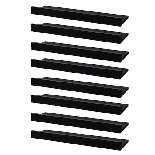 - Kit 8 Prateleiras Porta Quadros 60 x 15cm Preta Suporte Invisível. A prateleira Crie Fácil foi desenvolvida pensando em deixar o seu ambiente mais organizado e criativo de forma prática e simples. Produto produzido em MDP de alta qualidade garantindo resistência e durabilidade. A prateleira é acompanhada de suporte para fixação de embutir invisível. Cor: Preto. Tamanho: 60 x 15cm. Material: Madeira MDP. Fixação: embutir invisível. Instruções de uso e instalação: Para fácil limpeza, utilize pano levemente umedecido. Não utilizar produtos químicos ou abrasivos. Acompanha embalagem com as instruções de montagem e fixação. Observação: todos os itens de decoração das fotos não acompanham o produto