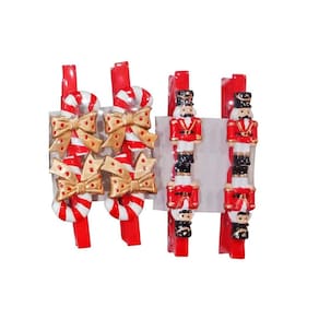 São 8 Prendedores (04 unidades de cada modelo) decorados com soldado quebra nozes e bengala listrada com laço Lançamento exclusivo Magizi!