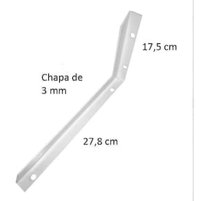 Você tem ideia nos inúmeros lugares que pode utilizar uma mão francesaA mão francesa pode ser utilizada em prateleiras, mesas, suportes, bancadas, vidros, entre outros.Nossas mãos francesas são muito resistentes, aguentando até 50 kg por suporte. Acompanha 16 dezesseis parafusos e 16 dezesseis buchas Nº8 por suporte.Informações Técnicas:Cor: BrancaResistencia: até 50 kg por suporteDimensão: 27,8cm x 17,5cmEspessura da Chapa: 3mmOBS: Recomenda-se espaçamento máximo entre os suportes de 50cm.Inclui no kit:- 8x Mão francesa Suporte - 16x Parafusos 5,0 x 40mm- 16x Buchas 8mm